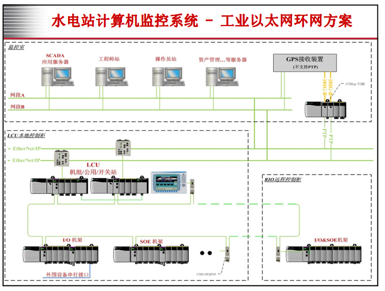 The local control unit level consists of seven local control units, and each LCU shall be intelligent and have programmable capabilities. LCU uses AB's ControlLogix's 1756 series products for hardware redundancy, supports hot-swap with point, runs in master/hot standby mode, and realizes redundant switching through Rockwell's redundant control module (1756-RM2) without additional programming. , the bottom adopts Ethernet ring network (DLR) for network redundancy. Use 1756-EN2TR for ring or star redundancy with the host computer.
