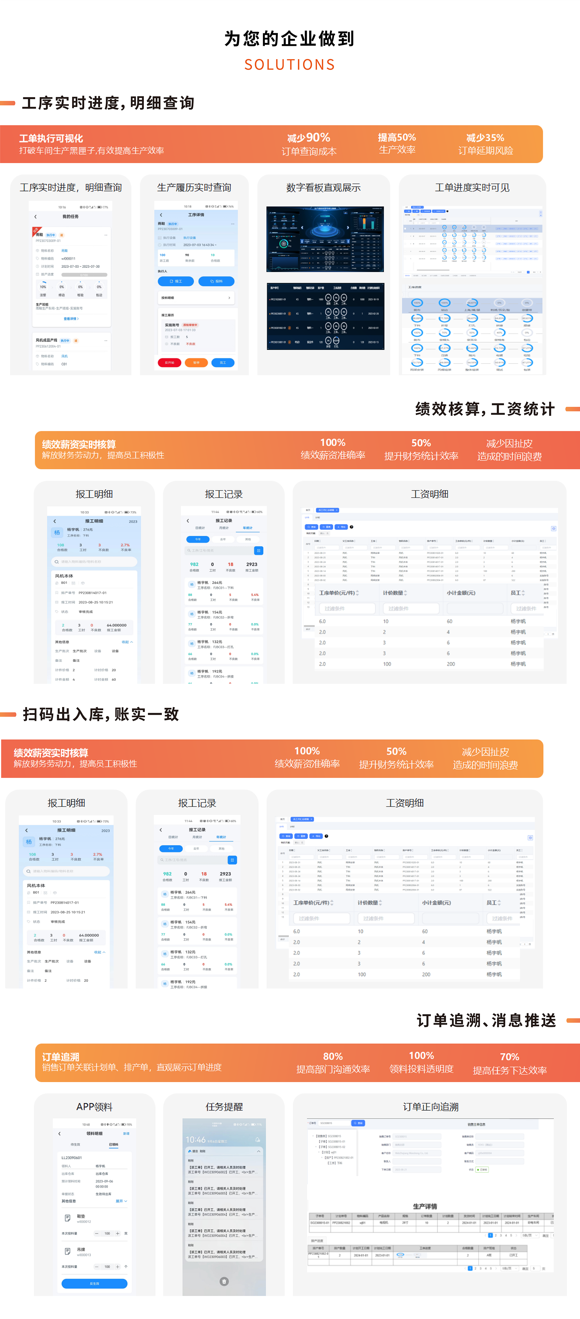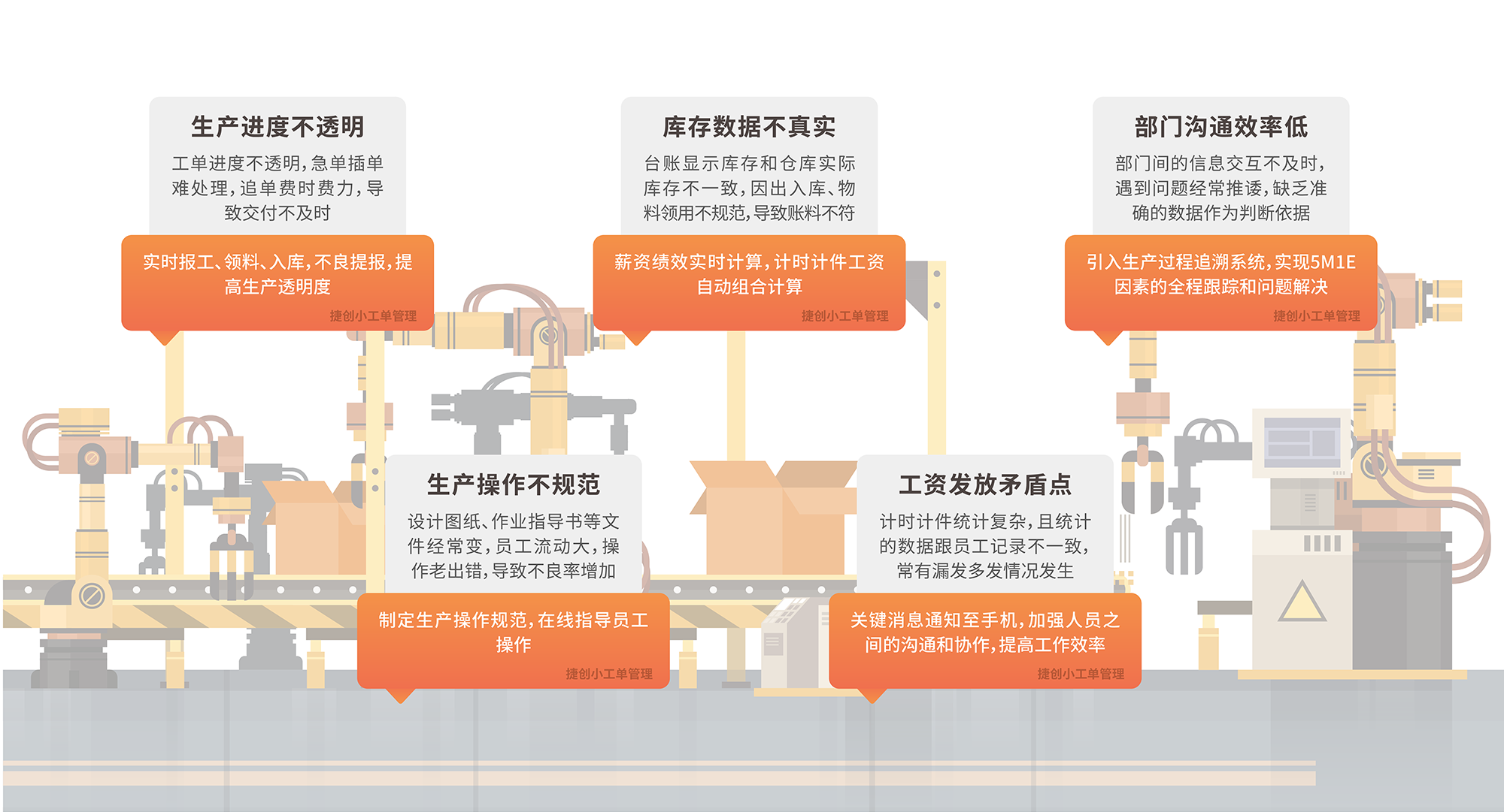捷创小工单是一款轻量、简单、高效的工厂数字化应用,旨在帮助制造企业轻松迈出数字化转型的第一步。它能够打破工厂内外部的数据孤岛,实现生产进度的透明化、生产任务的快速下发、生产作业的标准化、计时计件工 资的自动核算、库存台账的实时更新以及外生产过程追溯等。