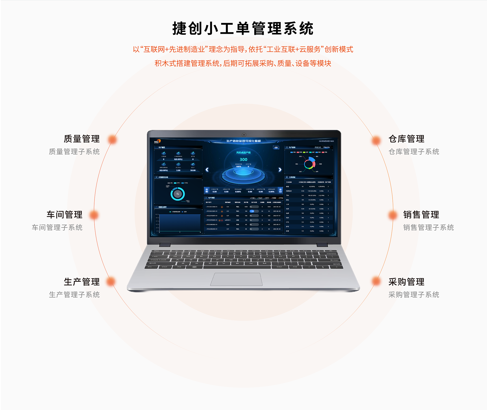 通过「捷创小工单」,车间与办公室、厂内与供应链上下游可以实现高效协作,提升运转效率、质量及柔性制造能力,灵活快速地响应多变的市场需求。
