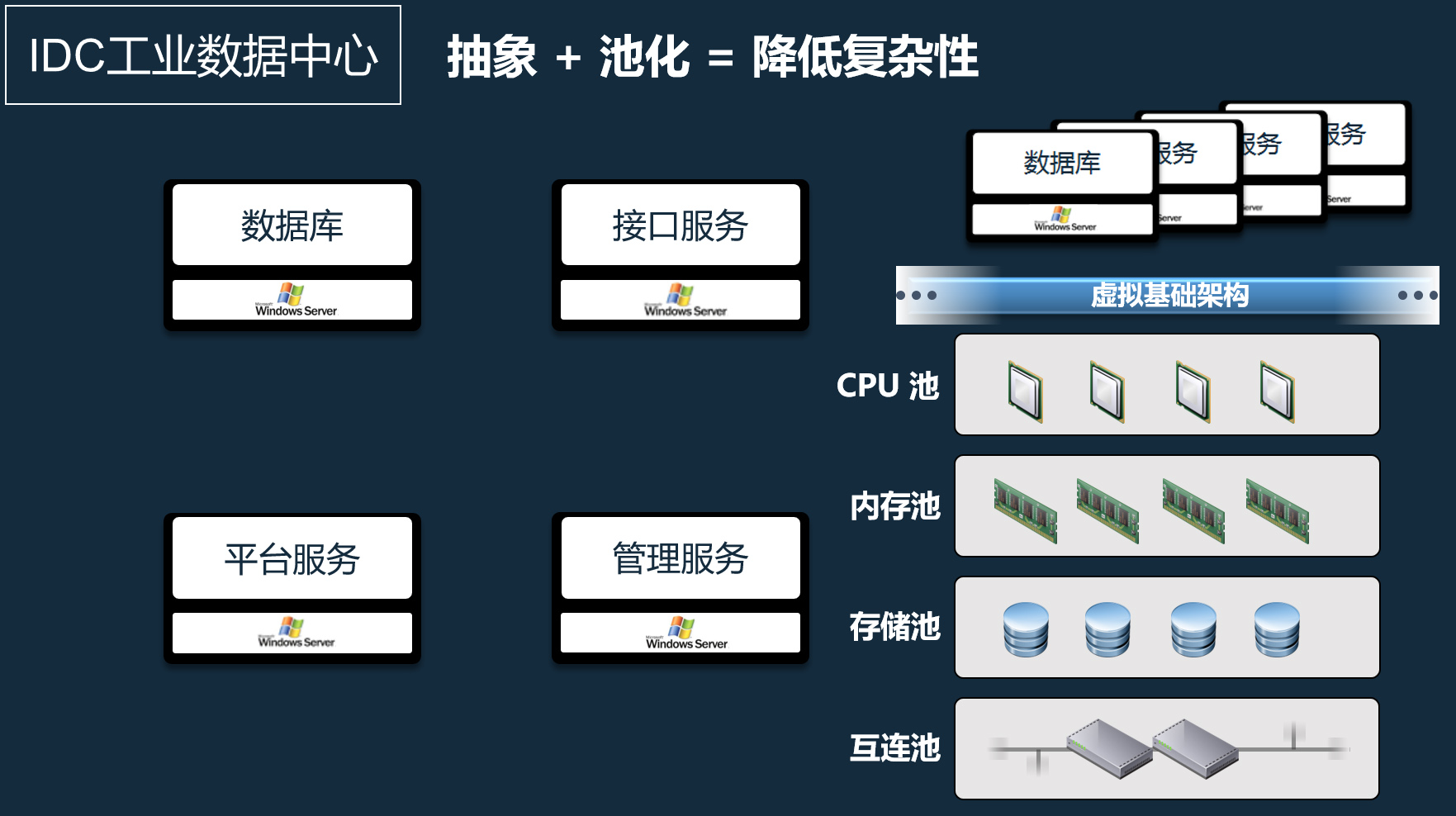 Complete IDC industrial data center planning and implementation, provide industrial-level virtualized application services, realize centralized management of physical hosts, reduce daily maintenance costs, and greatly reduce application service downtime caused by software upgrades, compared with traditional methods. , IDC can be implemented through thin client applications, thereby greatly reducing the complexity of the workshop field terminal hardware management.